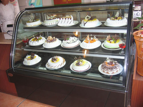 3. 물자: 화강암 기초 케이크 진열장을 가진 유리제 문