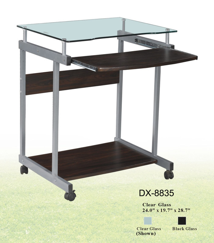شفاف میز شیشه ای و چوب کامپیوتر طراحی کوچک با چرخ DX-8835