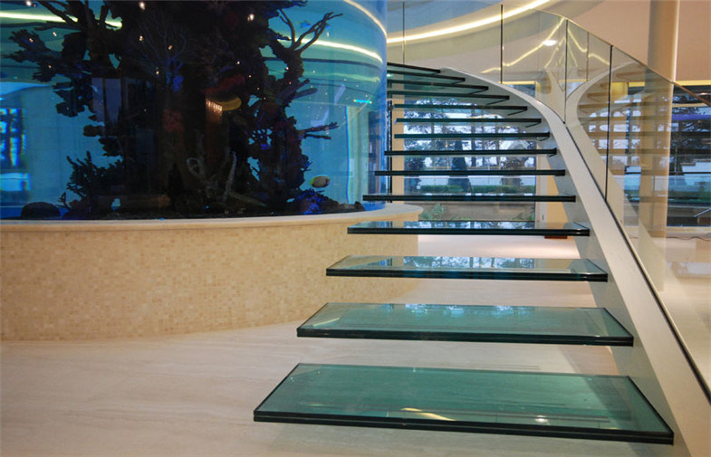 Использованный для лестниц внутренности или снаружи. С сильной прочностью для того чтобы держать безопасность когда люди гуляя на стеклянные лестницы. Красивейшая конструкция для зданий.